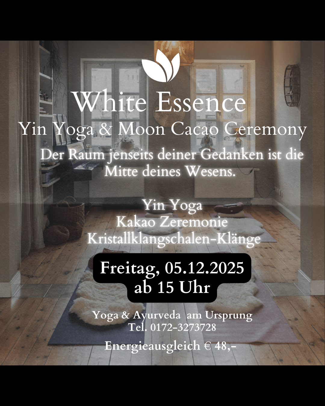 Kristallschalen-Klängen, Kakao-Zeremonie und Yin-Yoga werden euch zu einem Moment der Rückkehr – zurück zu euch führen.